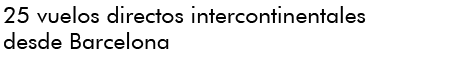 Barcelona tiene vuelos directos a 25 ciudades en otros continentes, en América en su mayor parte. Filadelfia, Buenos Aires, Atlanta, México DF, Cancún, la República Dominicana y Nueva York forman parte del listado americano (los vuelos a Atlanta, Filadelfia y Nueva York son diarios). La frecuencia de los demás vuelos varía entre una y tres veces por semana. Air Transat, la aerolínea operadora del vuelo a Montreal, ha anunciado que la inauguración de una nueva línea Toronto-Barcelona a partir de este 19 de abril. Barcelona también tiene conexión con la capital jordana de Ammán por medio de dos vuelos semanales de Royal Jordanian, y con Argel, por medio de Spanair y Air Algerie.