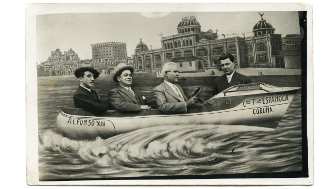 From its beginnings almost two centuries ago, photography has been a space for play and imagination. Long before cameras became common in households, having one's portrait taken could mean briefly experiencing the illusion of flying, sailing or living in a palace. At the beginning of the 20th century, this fantasy became widespread thanks to the "minute photographers", itinerant men and women who travelled from town to town and to local festivals with handmade cameras, painted backdrops and small props. The images, developed "on the spot" and in full view of the public, were affordable and continued to be produced until the 1960s, when domestic photography became widespread. This exhibition recovers and recreates some of the photographs preserved by the Museu Marítim de Barcelona, inviting visitors to continue playing with images through today's mobile devices.